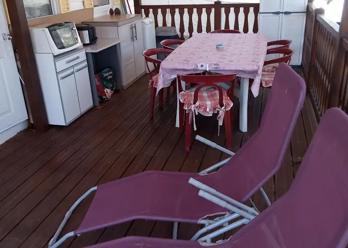 Camping L'Escale Hotell är belägen 6 km från Musée de l'Ephebe. Den erbjuder boende med 1 sovrum samt en terrass. Villan har plattskärms-TV med satellitkanaler och luftkonditionering. Gästerna kan också använda vattenkokare, kylskåp och köksredskap.